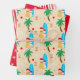 Christmas Santa Surfing Dogs Tan Gift Wrap Set 3
