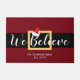 Decorate for the upcoming holidays with this festive and modern doormat. It features a santa's belt design with white script saying "We Believe" with an accenting Santa hat design. Your family's name and established date sit below in white. Let everyone know you believe in the Christmas spirit with this fun and whimsical Christmas doormat!
