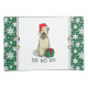 Christmas Santa Claus Soft Coated Wheaten Terrier - Funny, smiling, cartoon dog with a Santa hat and a Christmas present with a bow. HO HO HO! Copyright © Angi Laframboise. Cute Christmas holiday dog breed gifts for dog lovers.