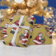 Christmas Santa with Sackful of Toys on Golden Wrapping Paper