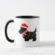 Scottish Terrier dog lovers will enjoy this festive, black Scottie Dog wearing a Santa hat, red and white striped scarf and colourful string lights! Get into the Christmas spirit with this funny design on custom mugs!