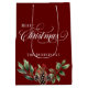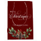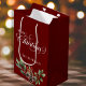 Traditional Christmas gift bag with a script and decoration for the Holiday Season on front and back. Easy wrapping of your gifts, just add a tag. If you have several present, this is a perfect way to collect them together in an elegant and custom gift bag. This will look great under the tree.