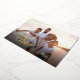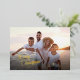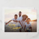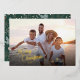 This simple full photo Christmas card features elegant modern script appearing in real gold foil on the front. The backside offers space for a personal message and is accented with a boho winter greenery patterned background appearing in soft tans and teals on a dark teal green background.