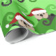 Cute sea otters riding the green festive waves with red Santa hats wrapping paper.