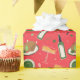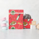 Christmas seamless pattern in retro style. Christmas party table with turkey and champagne on a red background with snowflakes.