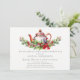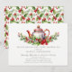 This festive Christmas season baby shower tea invitation features a tea pot adorned with holly and berry branches. The invitation is perfect for celebrating the upcoming bride during the holiday season. The front of the invitation features the tea pot and the mum to be name, date, time, and location of the shower. The back of the invitation has a coordinating holly pattern for an extra special touch. The overall design is festive and charming, and the invitation is sure to put a smile on the faces of your guests.