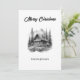 Celebrate the season with this charming black and white outdoor adventure themed Christmas cabin mountain water lake pine tree forest holiday card art decor, perfect for couples and families who love nature and the great outdoors. Featuring a beautiful watercolor scene with pine trees, tents, and winter wonderland ambiance, this card is sure to bring joy to any outdoorsy pair. Personalise the front message, family name, and year. Ideal for sending holiday cheer to fellow adventurers, this card blends a love for nature with festive warmth, making it the perfect keepsake for couples who cherish the wild.