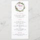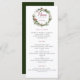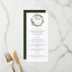A Holly and pine wreath circles the menu for a festive wedding celebration. Set the stage with your colour theme of pine green, holly berry red, and clean crisp white. Titles in Christmas red, reverses to deep pine green background.