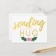 Christmas sending a socially distant hug postcard, which features green holly leaves and a watercolor heart.