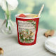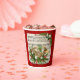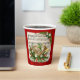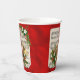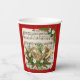 A music themed Christmas party isn't complete without matching paper cups. The design features a French horn decorated for the holidays with greenery, red berries and flowers, in front of a vintage sheet music scroll. The red faux metallic background adds an extra festive touch.