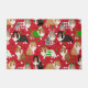 Cute Shetland Sheepdog dressed in festive holiday outfits, Santa hats and argyle sweaters with scattered Christmas ornaments on a white background.