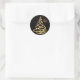 Christmas Shiny Golden Ribbon Tree Sparkle Black Classic Round Sticker. Unique, beautiful, stylish design. Easy to be personalized. Font style, size and colors can be changed. Matching items are available.