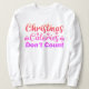 This fun Christmas sweatshirt features a whimsical slogan about enjoyment during the festive season, playfully suggesting that holiday calories should be ignored for merriment.