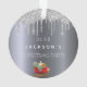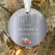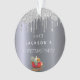 Elegant, classic, glamorous style ornament for the holidays. A faux silver metallic looking background with faux silver glitter drip. Santa Claus' vintage red sleigh filled with gifts as decor. With the text: Christmas Party. Templates for year and a Family name. Perfect as a keepsake for your annual Christmas party.