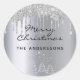 Christmas silver glitter drips classic round sticker
