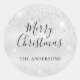 Christmas silver glitter monogram classic round sticker