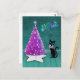Christmas Silver Pink Tree Atomic Black Cat Teal Postcard