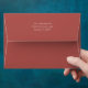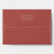 This design features Christmas holiday red rust festive envelope with a clean trendy classic traditional minimal, modern elegant simple trendy,5x7 a7 cute whimsical, return address back flap, simple minimalist minimal fun, with minimal holiday white snowflakes, great Christmas holiday mailing supplies, coordinating matching envelope, holiday Christmas greeting envelope