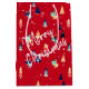 Christmas Skier In Snowflakes On Red Medium Gift Bag