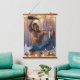 The polyester fabric displayed many wrinkles and several sharp creases throughout. At the bottom of the tapestry, I noticed a bulge in the fabric because it was not pulled tight enough before being connected to the wooden boards. It took me over an hour to spay water on the tapestry before putting it on an ironing board where I used a warm iron over a polyester cloth to remove the wrinkles and creases in the material. I was able to get out the wrinkles and creases that made that tapestry look as beautiful as its picture.
