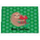 Christmas Sloth with Gift Green Snowflake Large Gift Bag