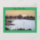 This atmospheric snow scene art postcard has a picture of a little snow covered landscape. In the foreground of the scenic image are tufts of snow covered grasses and shrubs. In the background the bare winter branches of the distant trees are draped in seasonal snow and a thick layer of soft white freshly fallen snow covers the grassy plains. This little water-colour painting is evocative of cold December day and looks really special on this unique Christmas postcard. The title of the original painting is “Snow On The Plains.” This is a customisable postcard, you can personalise it with your own text.