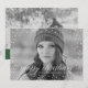Celebrate the holidays with your friends and family by sending them a beautiful, Christmas photo card. The modern Christmas photo card design features elegant white typography along the bottom of the card, a snow border overlay, custom text on front and back, and a placeholder for two full-size images of your family. The back features a green band at the bottom where you can add a custom holiday greeting.
