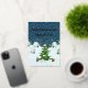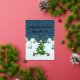 Peaceful snowy night in Christmas village elegant custom Christmas card with golden details.