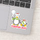 A little penguin cartoon with snowball and a fainted one. Both wearing green scarfs and santa hats. Custom text.