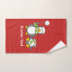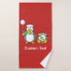 A little penguin cartoon with snowball and a fainted one. Both wearing green scarfs and santa hats.