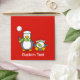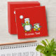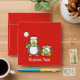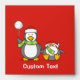 A little penguin cartoon with snowball and a fainted one. Both wearing green scarfs and santa hats.
