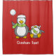 A little penguin cartoon with snowball and a fainted one. Both wearing green scarfs and santa hats.
