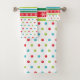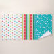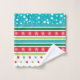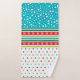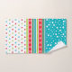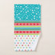 A cute, modern and bright festive Christmas holiday pattern featuring red, green and blue polka dots on white; white snowflakes on the same coloured horizontal stripes and a blue background filled with white snow. This patterned design is ideal for your bathroom decor over the winter holidays.