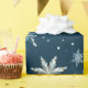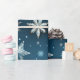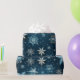 A blue, silver and gold snowflake wrapping paper design ideal for wrapping that special gift at Christmas time.