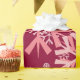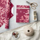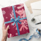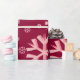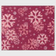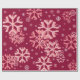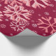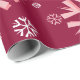 This Christmas Holiday wrapping paper is shown on a Burgundy background with snowflakes printed in different sizes from super large to smaller in a soft warm Carnation Pink, pale Pink and White. On glossy paper.