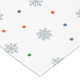 Festive winter design, adorned with delicate snowflakes and a scattering of small red, blue, and green dots. The background is a neutral colour on both sides, providing a subtle backdrop for the wintery elements. Graceful snowflakes dance across the surface, creating elegant atmosphere. Scattered among the snowflakes are small, vibrant dots in shades of red, blue, and green, without overwhelming the overall design.