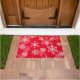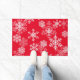 Doormat shown with a red background colour and a festive Christmas holiday snowflakes print.