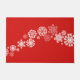 Doormat shown with a red background colour and a festive Christmas holiday snowflakes print.