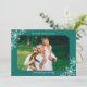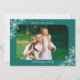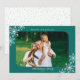 This simple photo Christmas card offers a horizontal picture accented with rounded corners. The design features white snowflakes on a dark teal background.