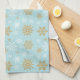 This kitchen towel is shown in a Aqua and Gold colours with a classic Christmas holiday snowflakes print.