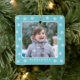 Christmas Snowflakes Photo Name Blue Ceramic Ornament