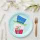 Entertain with Christmas baked goodies, cupcakes, cookes and more with these cute Snowman cupcake plates. The snowman cupcake is wearing a blue top hat with green accents and a lime green neck tie with blue dots. The bottom cupcake wrap paper is red with lavender stripes. An orange carrot makes his nose. The background is a turquoise paint texture on white. This design is original art by Phyllis Dobbs and comes on matching paper napkins and other coordinating products in this store. Fully customisable.