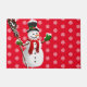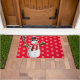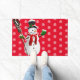 Doormat shown with a red background colour with a cute festive Christmas snowman print.