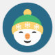 Christmas Snowman in Green Hat on Blue Classic Round Sticker