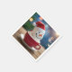 A charming snowman wearing a festive Santa Claus hat, delightfully nestled in a warm cup of hot chocolate