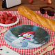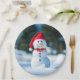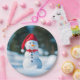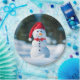 Cute Christmas snowman with a stocking cap and red bow tie in snowflakes.