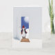Christmas snowman on skis in doorway holiday card
