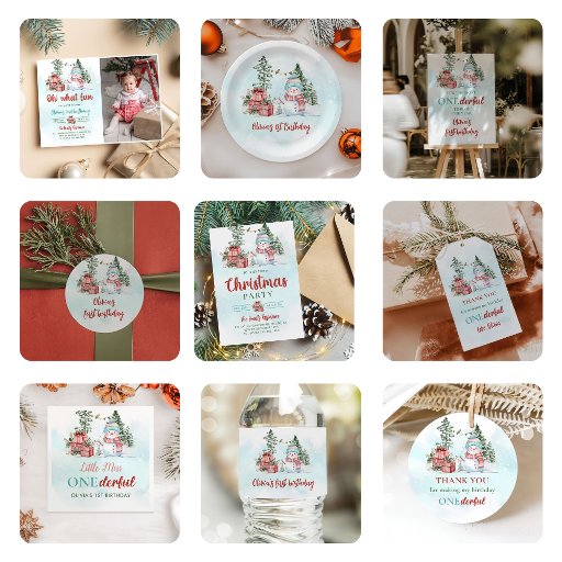 Christmas Snowman Winter Onederland 1st Birthday Invitation