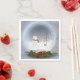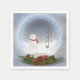 cute snowman with gold star and bird in Christmas snow globe with pine and red ribbon