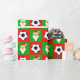 Christmas Soccer Balls & Santa Clause Red & Green Wrapping Paper